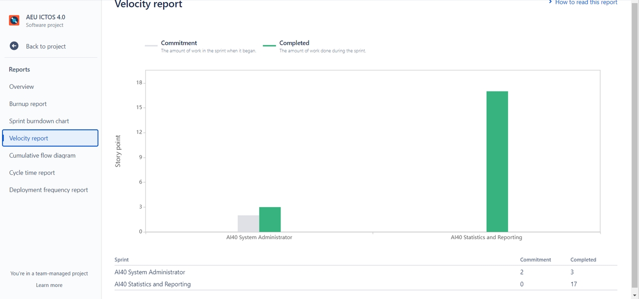The velocity chart shows how much work, on average, a scrum team produces in a sprint. Because the report monitors the anticipated and accomplished work over numerous sprints, teams may use velocity to predict how quickly they will be able to work through the backlog. The prediction is more precise the more sprints there are.