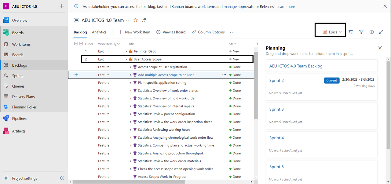 The Scrum Product Backlog is a list of everything that has to be accomplished as part of the project. The standard requirements specification artifacts are replaced by it. These elements could be of a technical nature, or they might be user-centric, such as user stories. In our case, the product backlog is separated into different methods, for example: creating a user story, story mapping, refinement session (grooming), and building a roadmap. The Scrum Product Owner is in charge of the Scrum Product Backlog. To have a comprehensive and extensive backlog, the Scrum Master, the Scrum Team, and the manager participate. Throughout the whole project, changes could be made to the Scrum Product Backlog. Existing requirements may be changed, modified, or even removed as required. New requirements may also be introduced.