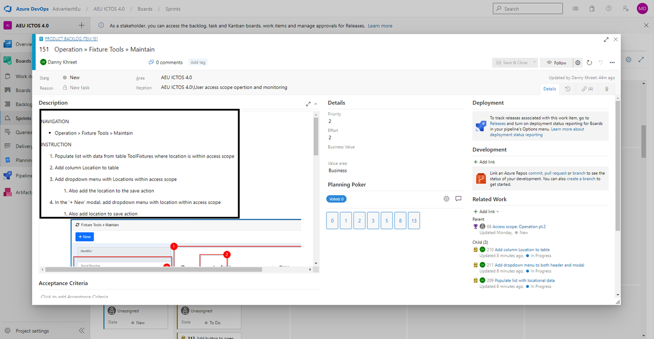 A user story is a component of the Agile software development methodology for gathering the requirements of a need from the viewpoint of the end user. Simply defined, a user story aids in the creation of a simple and brief description of a need from the viewpoint of the user. The Product owner often creates user stories, which belong in the product backlog. These user stories are added to the sprint backlog depending on priority during the Sprint Planning meeting. For creating a user story, the Product owner typically complies with a straightforward process using the Azure DevOps platform: