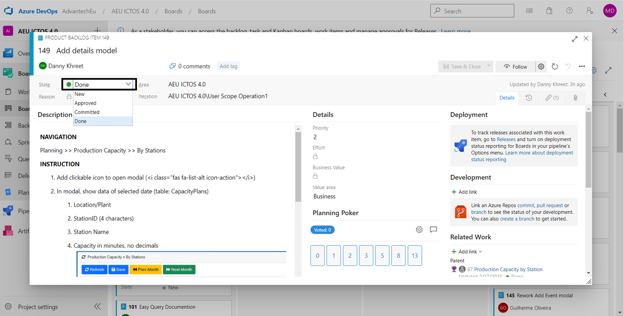 When a task is successfully reviewed during the testing phase in the GitHub environment from a developer, the status could be changed to done in the Scrum environment software in our case it is Azure DevOps.