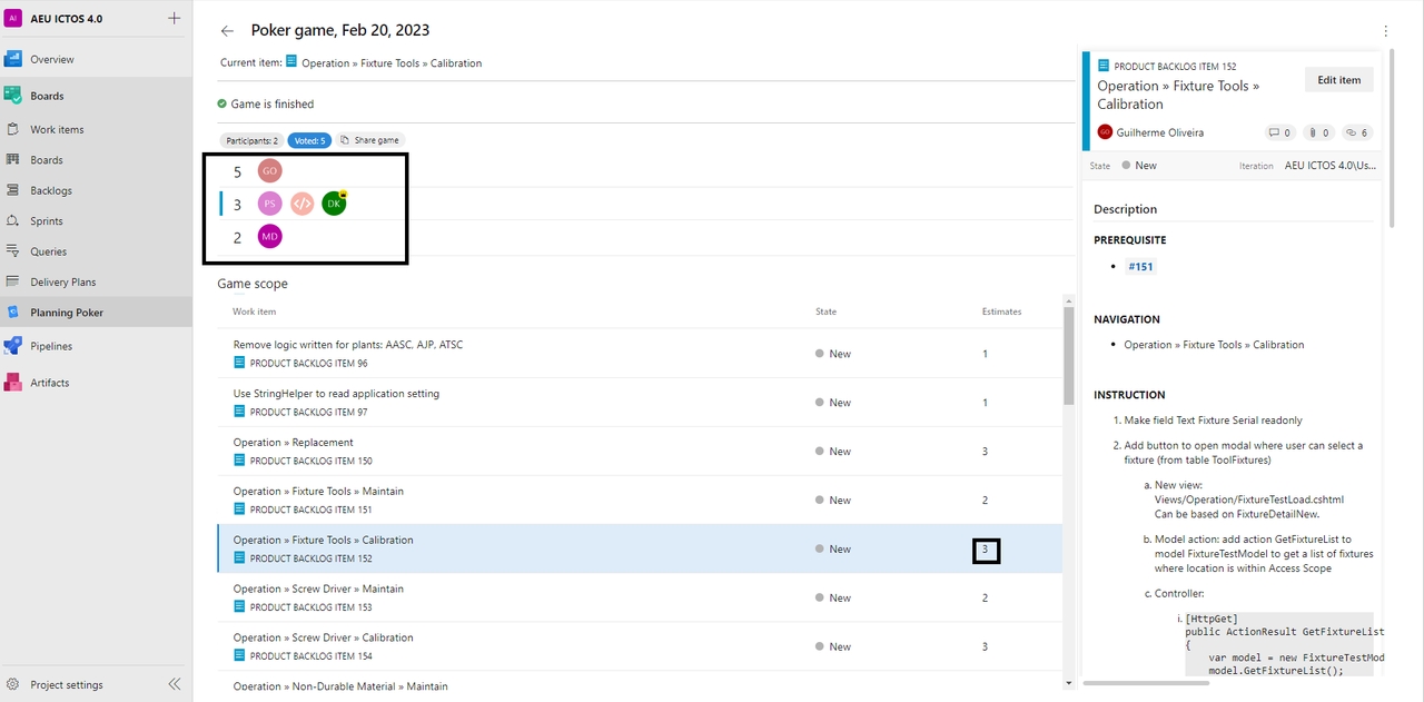 A consensus-based agile estimating and planning method is called planning poker. The product owner or client reads an agile user story or introduces a feature to the estimators to begin a poker planning session. Planning Poker cards, in the recommended order of 0, 1, 2, 3, 5, 8, 13, 20, 40, and 100, are in each estimator's possession. The figures correspond to the team's estimated amount of story points, ideal days, or other units. The estimators talk about the feature and consult with the product owner as necessary. After the feature has been thoroughly reviewed, each estimator chooses a card in private to symbolize their estimate. Then, all cards are revealed simultaneously. Finally, the team chooses one final estimation number of the task.